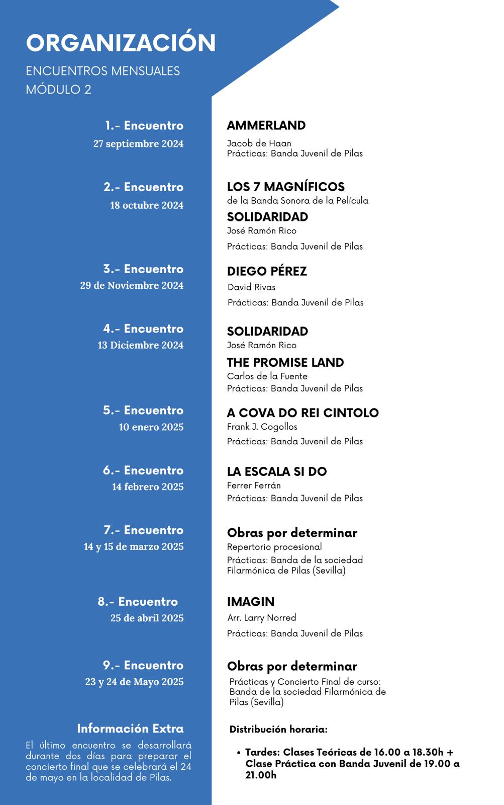 - Módulo 2: iniciación a la dirección de orquesta y banda para jóvenes de entre 16 y 22 años, al mando de Juan Luis Monsalves Suárez y Miguel Ángel Martín Hernández.