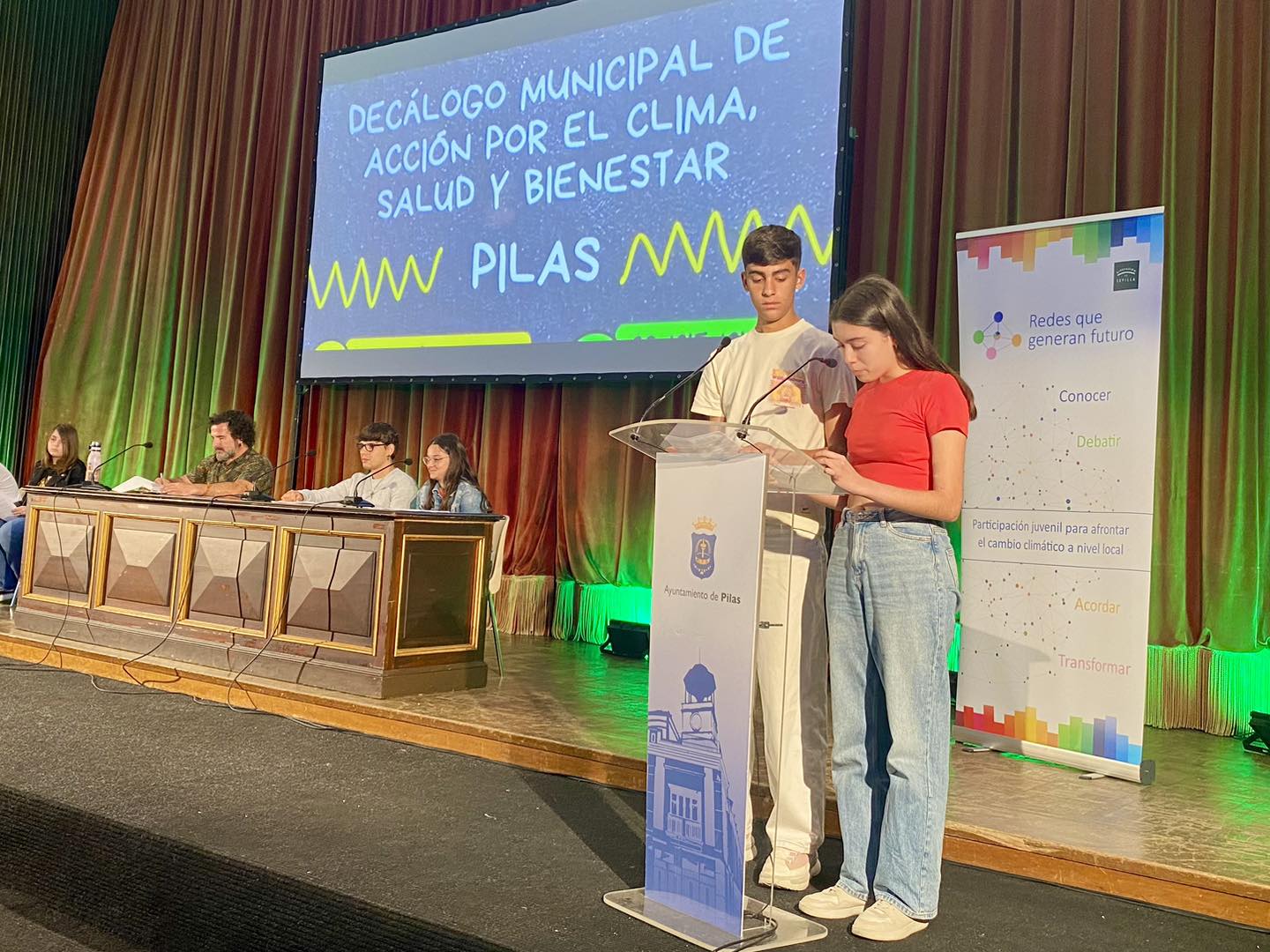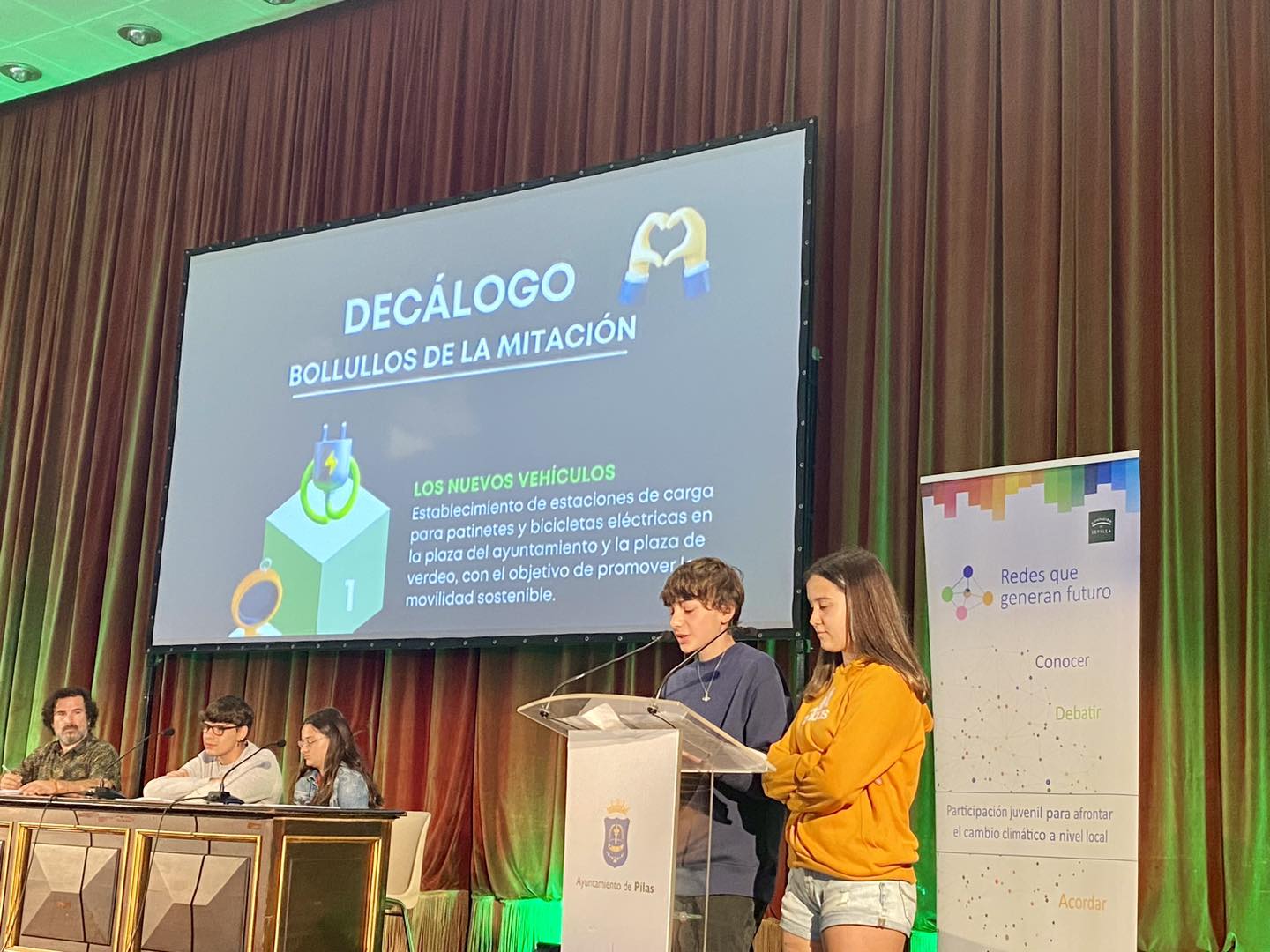 Esta mañana, el salón de actos de Lantana Garden ha acogido la última sesión de este proyecto organizado por la Diputación de Sevilla, en el que han participado un total de 40 municipios de la provincia, entre ellos Pilas, -con la representación del alumnado de 4º de ESO del IES Virgen de la Soledad- de los cuales, se han trasladado hasta nuestro municipio los representantes de las localidades aljarafeñas de Bollullos de la Mitación, Aznalcóllar, Gines, Castilleja de Guzmán, Palomares del Río, Almensilla y Benacazón.