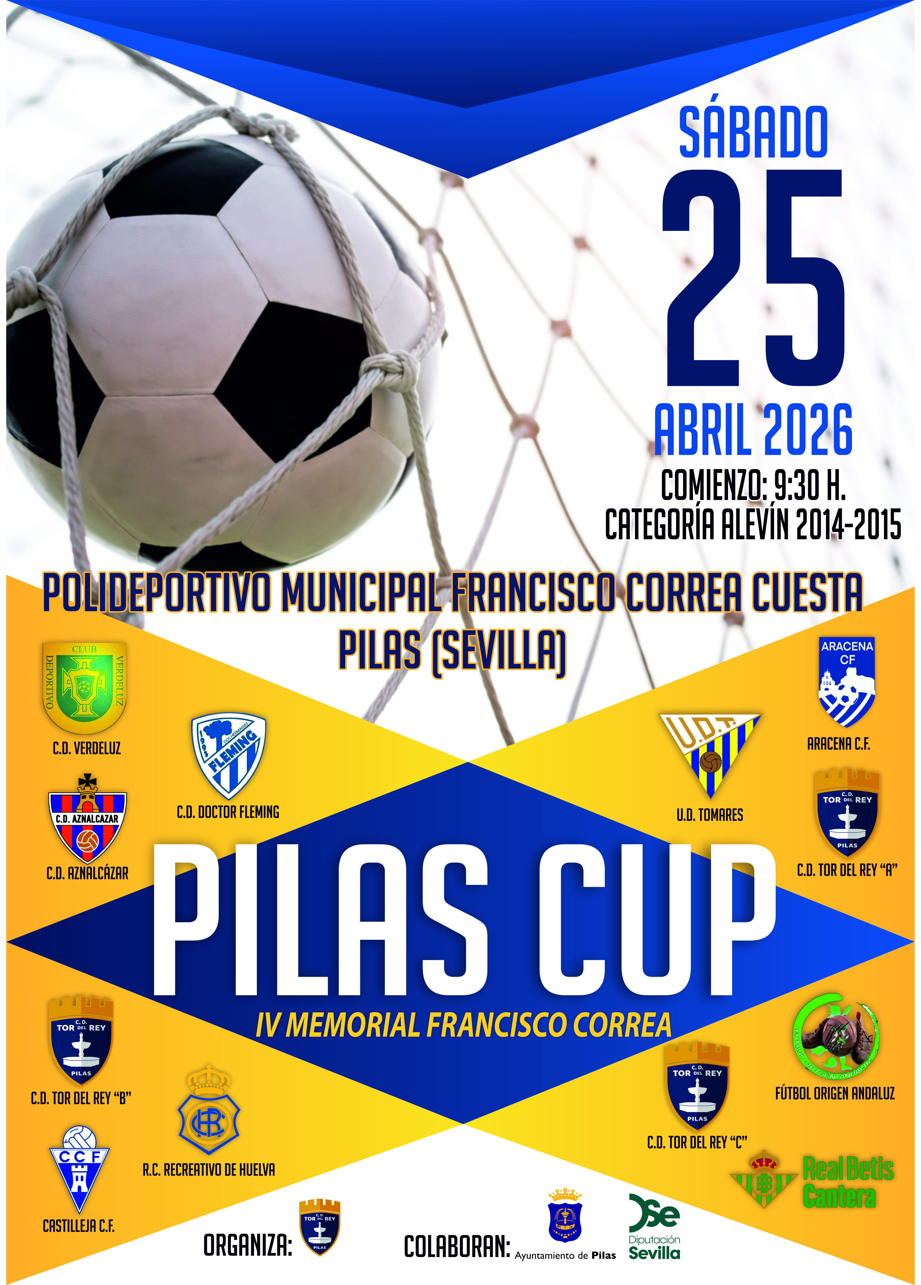 Este sábado, 25 de abril a partir de las 9.30 horas, el Memorial Francisco Correa reunirá en el Polideportivo Municipal del mismo nombre a los mejores talentos de categoría alevín (2014-2015) de toda Andalucía. Equipos de nuestra tierra, entre los que disfrutaremos de algunas canteras profesionales, se medirán en el campo con un único objetivo: darlo todo mostrar su calidad y gozar de un gran evento.