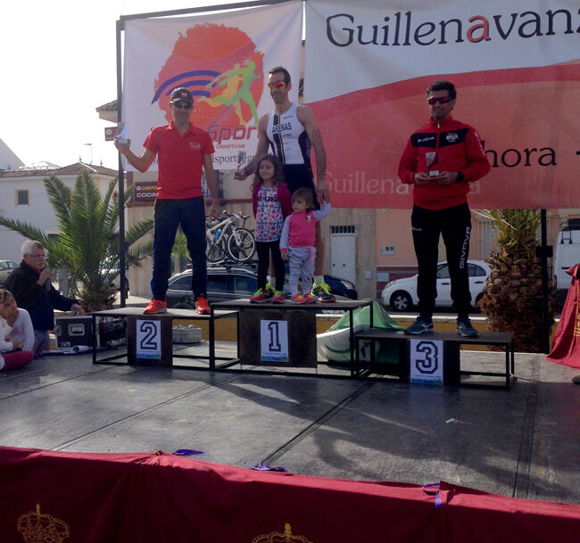 Podio del deportista pileño Antonio Jesus Diago en la I Duatlón Cros Guillena Green