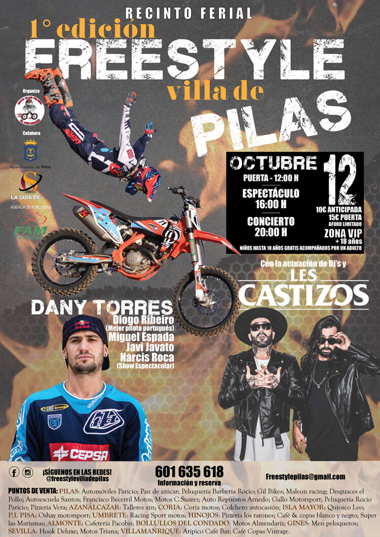 Las personas interesadas en ver, de forma inédita en Pilas, a los mejores pilotos del momento (Dany Torres, Diogo Ribeiro, Miguel Espada, Javi Javato y Narcis Roca con su show espectacular) pueden adquirir las entradas para el evento -que contará con aforo limitado- en taquilla por 15 euros.