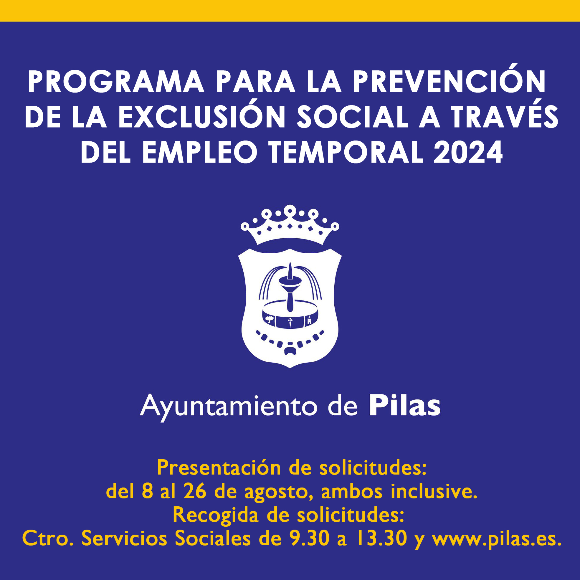 Este Ayuntamiento ha solicitado la adhesión al Programa para la Prevención de la Exclusión Social incluido en el Plan Provincial de la Diputación de Sevilla. La subvención concedida se utilizará para ofrecer contrataciones de carácter temporal a personas que padezcan problemáticas socioeconómicas graves, de acuerdo con lo previsto en el artículo 8 de la convocatoria.