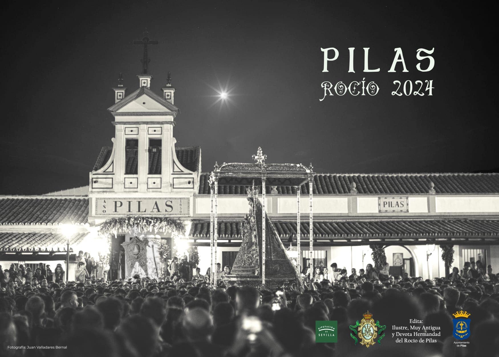 *Cartel de la Romería del Rocío de Pilas. Obra realizada a partir de una fotografía de Juan Valladares de la Virgen del Rocío a su paso por la Hermandad de Pilas, el Lunes de Pentecostés de 2023.