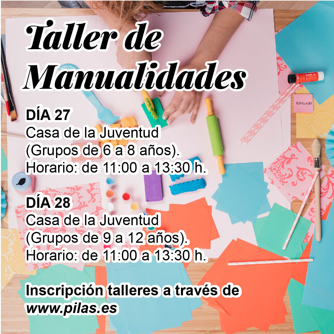 Todos los talleres se impartirán en la Casa de la Juventud de 11:00 a 13:30 h. y se dividirán en dos grupos: de 6 a 8 años y de 9 a 12 años.