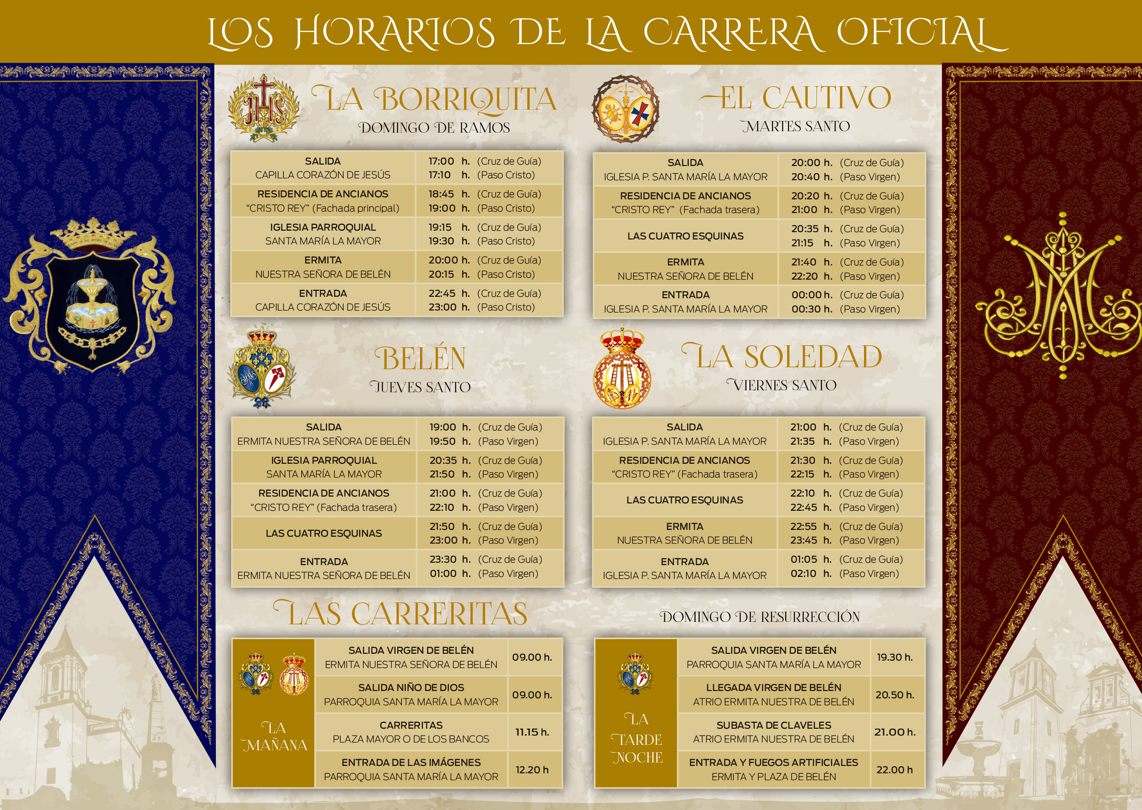 Consulta los horarios aproximados de salidas y entradas de las cofradías de nuestra localidad.