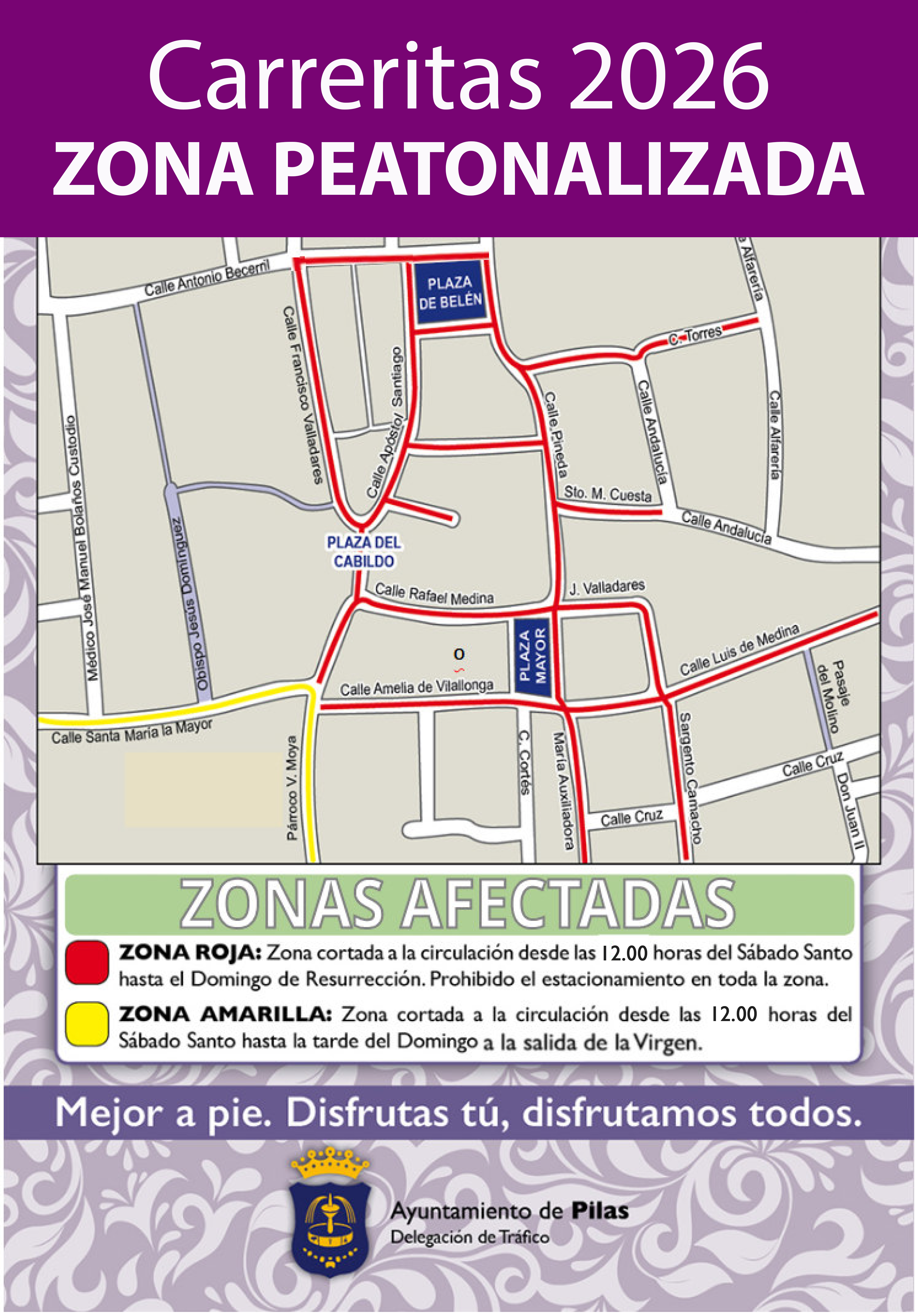 Un nuevo año, ¡Las Carreritas también son tuyas! Zona reservada. Con el objetivo de acercar nuestro Día Grande a todos los vecinos de Pilas que sufren problemas severos de movilidad, desde el Ayuntamiento volvemos a lanzar esta campaña. Zona especial habilitada. Plazo de solicitud: del 23 al 30 de marzo, de 11.00 a 13.00 horas en la Mesa 10 del Ayuntamiento.
