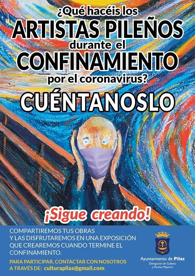 Pintores, músicos, escultores, fotógrafos, cineastas o cualquier visión de las artes y la cultura tiene lugar en esta muestra, en un gran encuentro, en una manifestación, que se llevará a cabo, finalizada esta pandemia. A través de culturapilas@gmail.com o llamando al teléfono 606247727, podéis contactar con nosotros y contarnos qué hacéis y cómo podemos ubicar la actividad en la muestra.