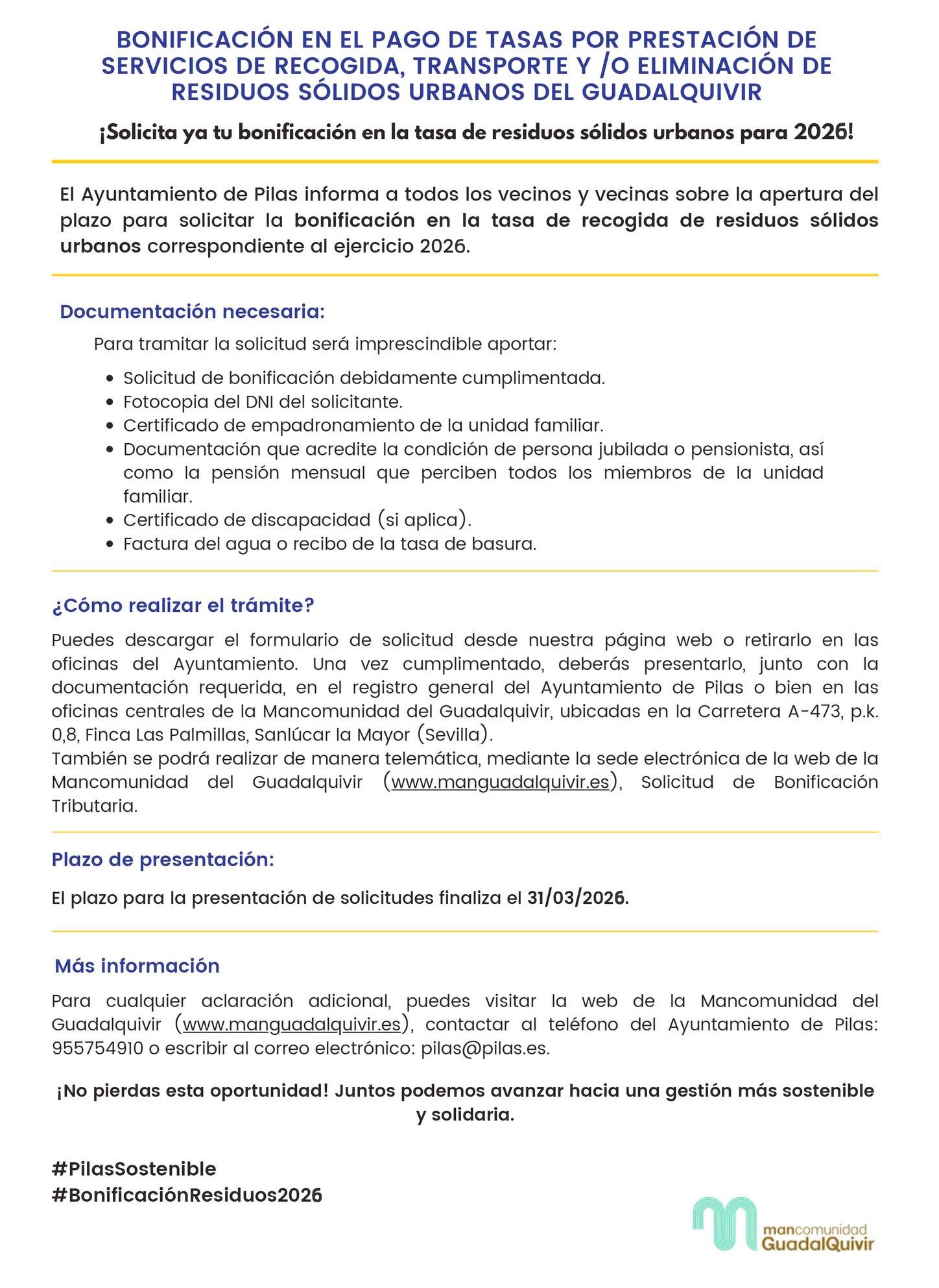 Solicita ya tu bonificación en la tasa de residuos sólidos urbanos para 2026