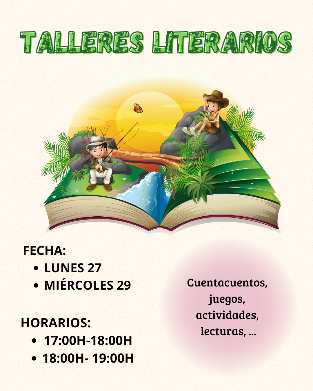 Talleres literarios: cuentacuentos, juegos, lecturas... Nuevas actividades organizadas por la Delegación de Juventud, dirigidas a niños y niñas a partir de 4 años. Lunes 27 y miércoles 29 de mayo, en dos turnos, a las 17.00 y a las 18.00 horas.