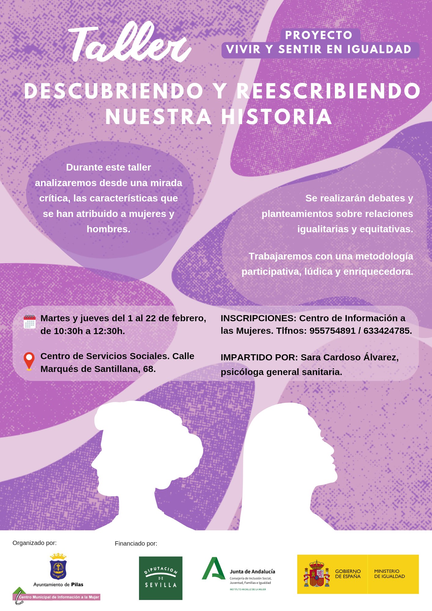 Inscripciones en el Centro Municipal de Información a las Mujeres (Centro de Servicios Sociales) o en los teléfonos: 955 75 48 91 / 633 42 47 85.