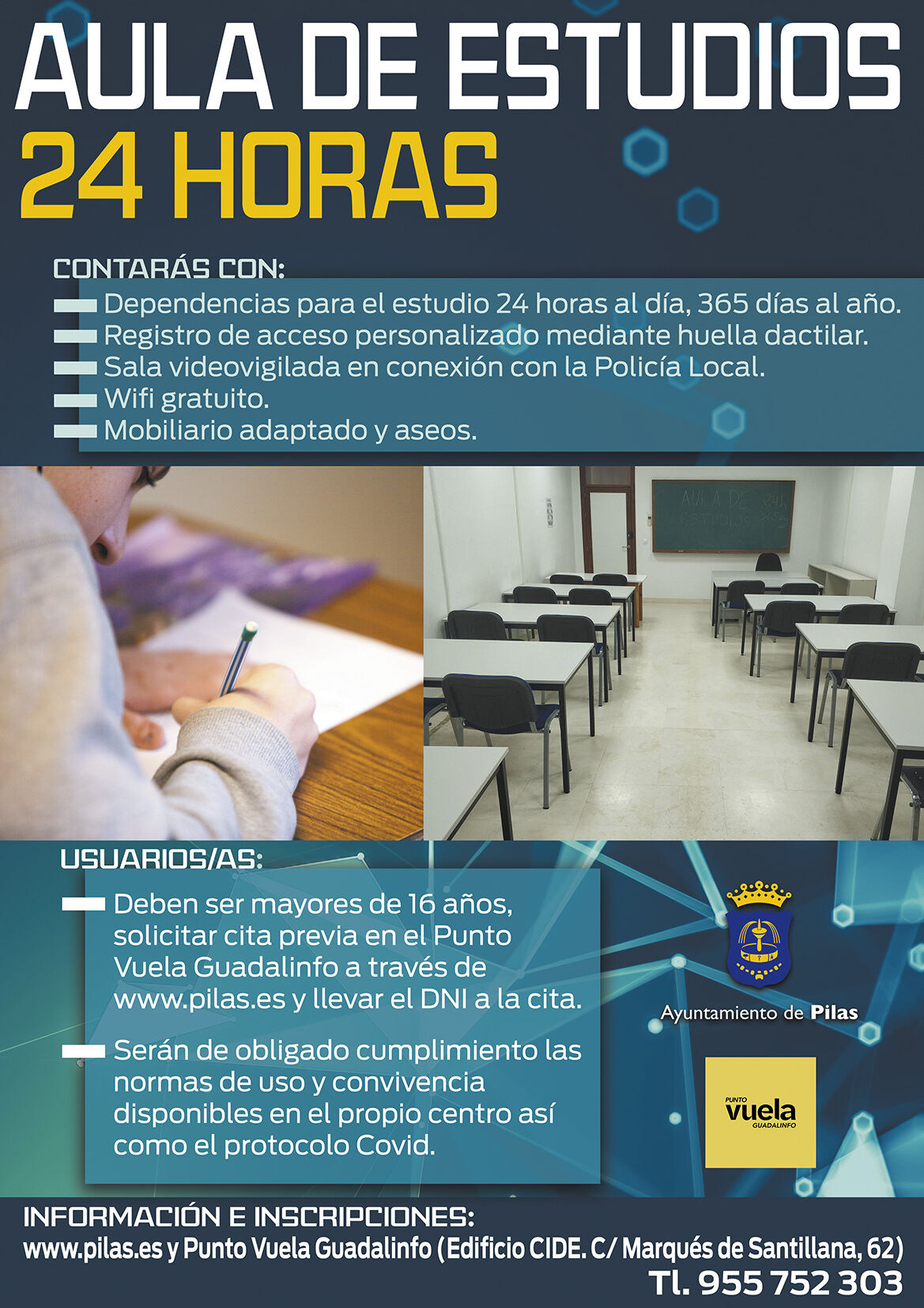 ¿Necesitas un lugar adecuado para estudiar cualquier día del año y a cualquier hora? Inscríbete en el Aula Municipal de Estudios 24 horas.