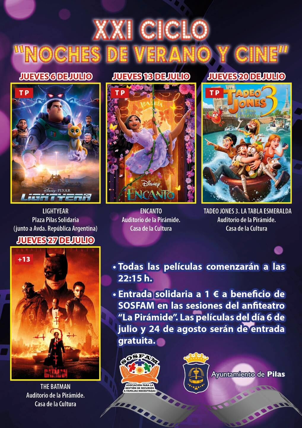 Entradas a beneficio de SOSFam (1 euro), salvo la primera y la última sesión, gratuitas.