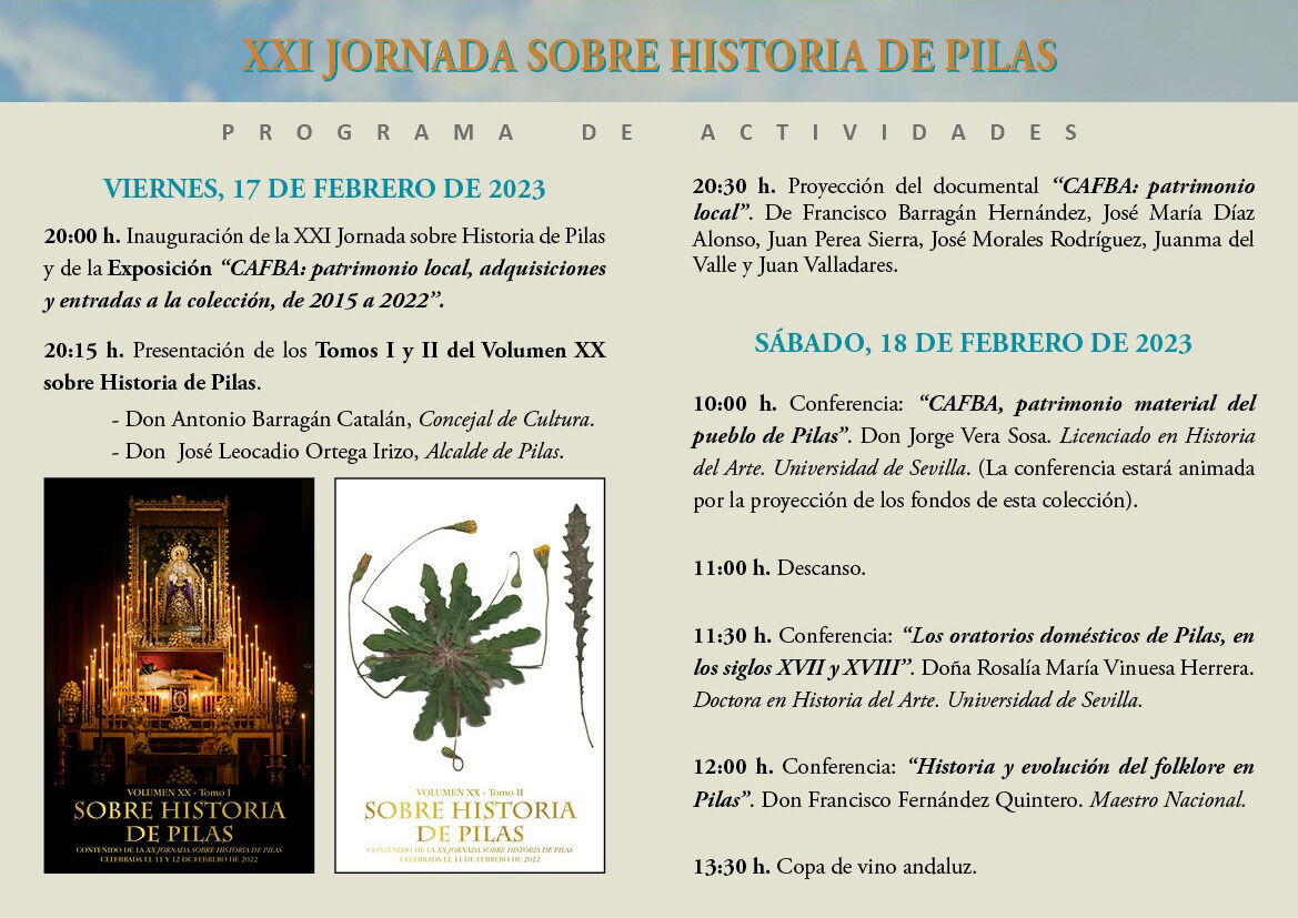 Los próximos 17 y 18 de febrero, tenemos una nueva cita con nuestro pasado. La Casa de la Cultura acogerá la vigésimo primera edición de la Jornada sobre Historia de Pilas, de la que hacemos público su cartel oficial, diseñado sobre una excelente fotografía de Juanma del Valle.
