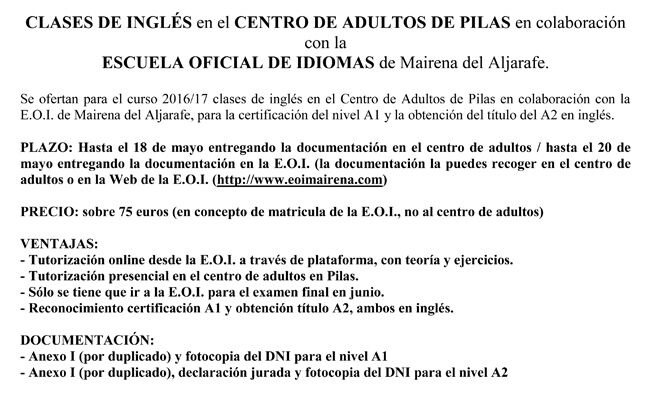 Clases de inglés para obtención de A1 y A2 en el Centro de Adultos