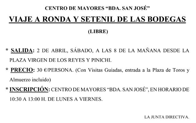 Próximos viajes de la Asociación de Mayores 'Barriada San José'
