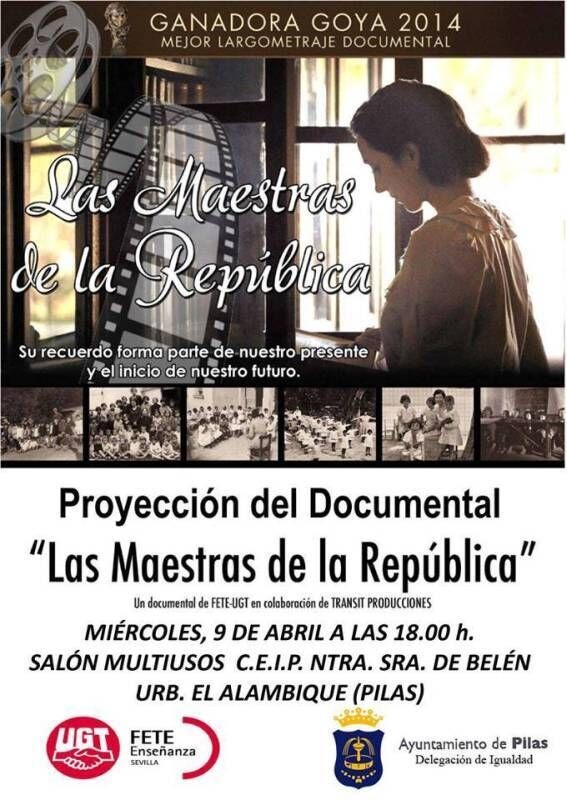 "LAS MAESTRAS DE LA REPÚBLICA" El próximo miércoles 9 de abril, se proyectará este documental de FETE-UGT, galardonado con el GOYA 2014 al Mejor Largometraje Documental. Entrada libre y gratuita hasta completar aforo. No te lo pierdas.
