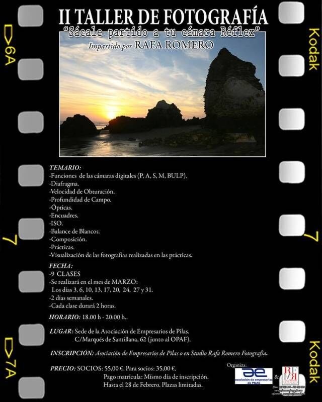 La Asociación de Empresarios de Pilas imparte el curso "Sácale partido a tu cámara réflex" que comenzará el próximo mes de marzo. Inscripciones hasta el 28 de febrero en la Asociación de Empresarios de Pilas y en el estudio del fotógrafo Rafa Romero.