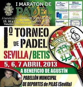 I Maratón de Pádel a beneficio de la Hdad. del Rocío: 15, 16 y 17 de marzo en el Pabellón Municipal de Deportes. Organizado por Ocio-sport en colaboración con la Delegación de Deportes del Ayuntamiento de Pilas. Ambigú todo el fin de semana y guiso el domingo. I Torneo de Pádel Sevilla/Betis, a beneficio de Agustín. 5, 6 y 7 de abril. Inscripciones del 18 al 21 de marzo.
