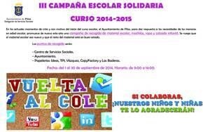 Una nueva edición de esta campaña con la que el Ayuntamiento de Pilas pretende dar respuesta a las necesidades de los menores en edad escolar, promoviendo la solidaridad entre nuestros vecinos y vecinas para la recogida de material escolar, mochilas, ropa y calzado infantil. Se ruega que el material escolar sea nuevo y que el resto del material esté en buen estado. Puntos de recogida en esta noticia.
