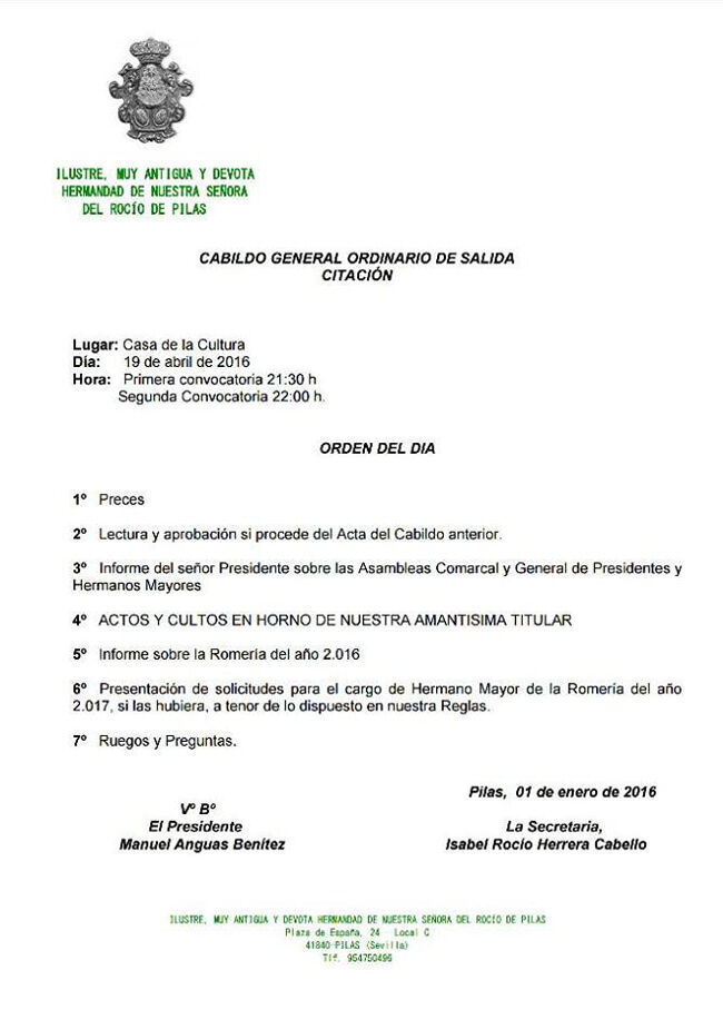 Desde la Ilustre, Muy Antigua y Devota Hermandad del Rocío de Pilas nos hacen llegar la siguiente información referida a las actividades que se llevarán a cabo en las próximas fechas.