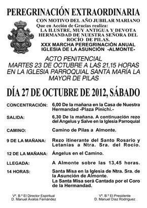 Con motivo del Año Jubilar Mariano, XXX Peregrinación Anual a la Iglesia de la Asunción de Almonte. Sábado, 27 de octubre.