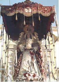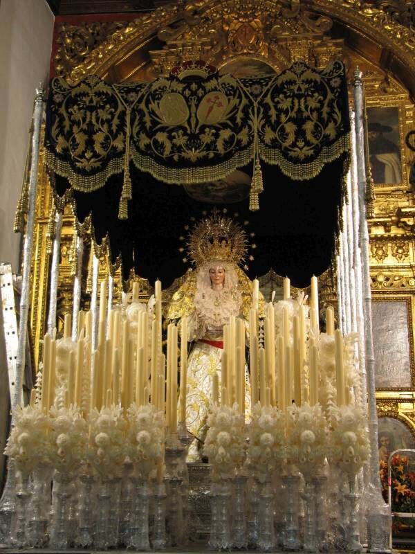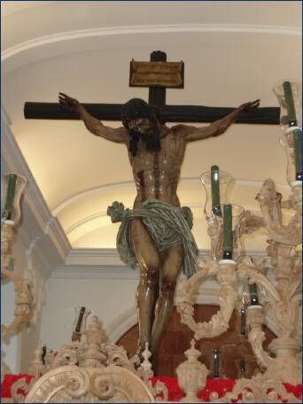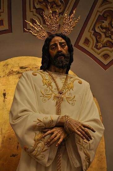Jueves Santo . Venerable y Real Hermandad de la Santa Vera-Cruz, Madre de Dios de Belén y Santiago Apóstol. Salida procesional del Cristo de la Veracruz y la Virgen de Belén. Francisco Buiza es el autor del Cristo de la Veracruz (1973), siendo la Virgen de Belén, patrona de Pilas, talla anónima datada en 1580 y coronada canónicamente en 1997. Túnicas: blanca, antifaz de terciopelo azul y capa blanca.