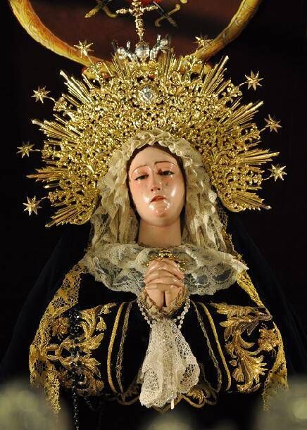 Viernes Santo . Real, Ilustre y Fervorosa Hermandad de Penitencia y Cofradía de Nazarenos del Santo Entierro de Nuestro Señor Jesucristo, María Santísima en su Soledad y Dulce Nombre de Jesús. Salida procesional del Cristo del Descendimiento en la Urna Procesional de estilo barroco y la Virgen de la Soledad bajo palio de terciopelo negro bordado en oro. Tanto el Cristo del Descendimiento como la Virgen de la Soledad son de autor anónimo, el Cristo fechado en el siglo XVII y la Virgen atribuida a Juan de Astorga. Túnica: de ruán negro de cola, con antifaz de igual tela y color y cinturón de esparto.