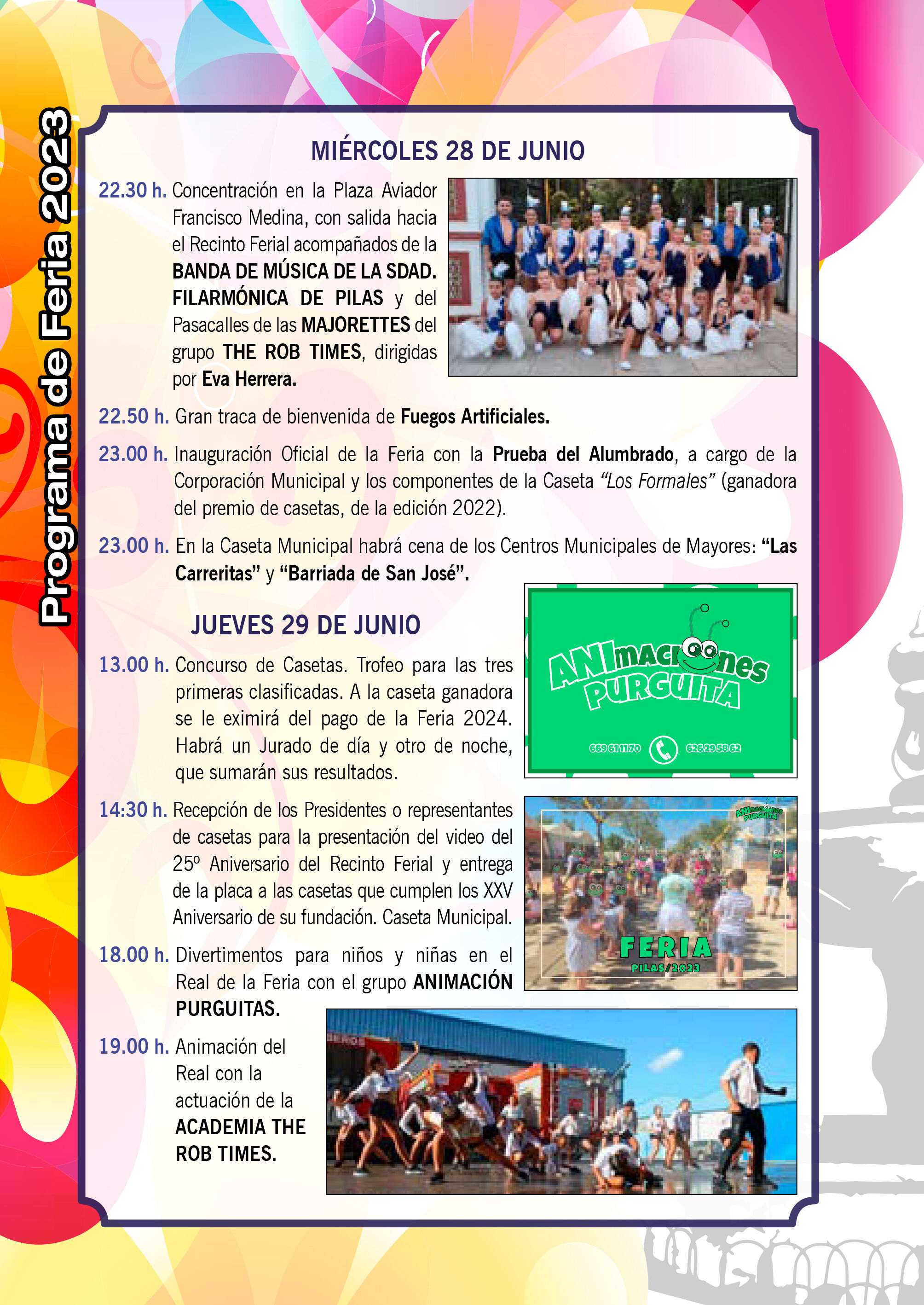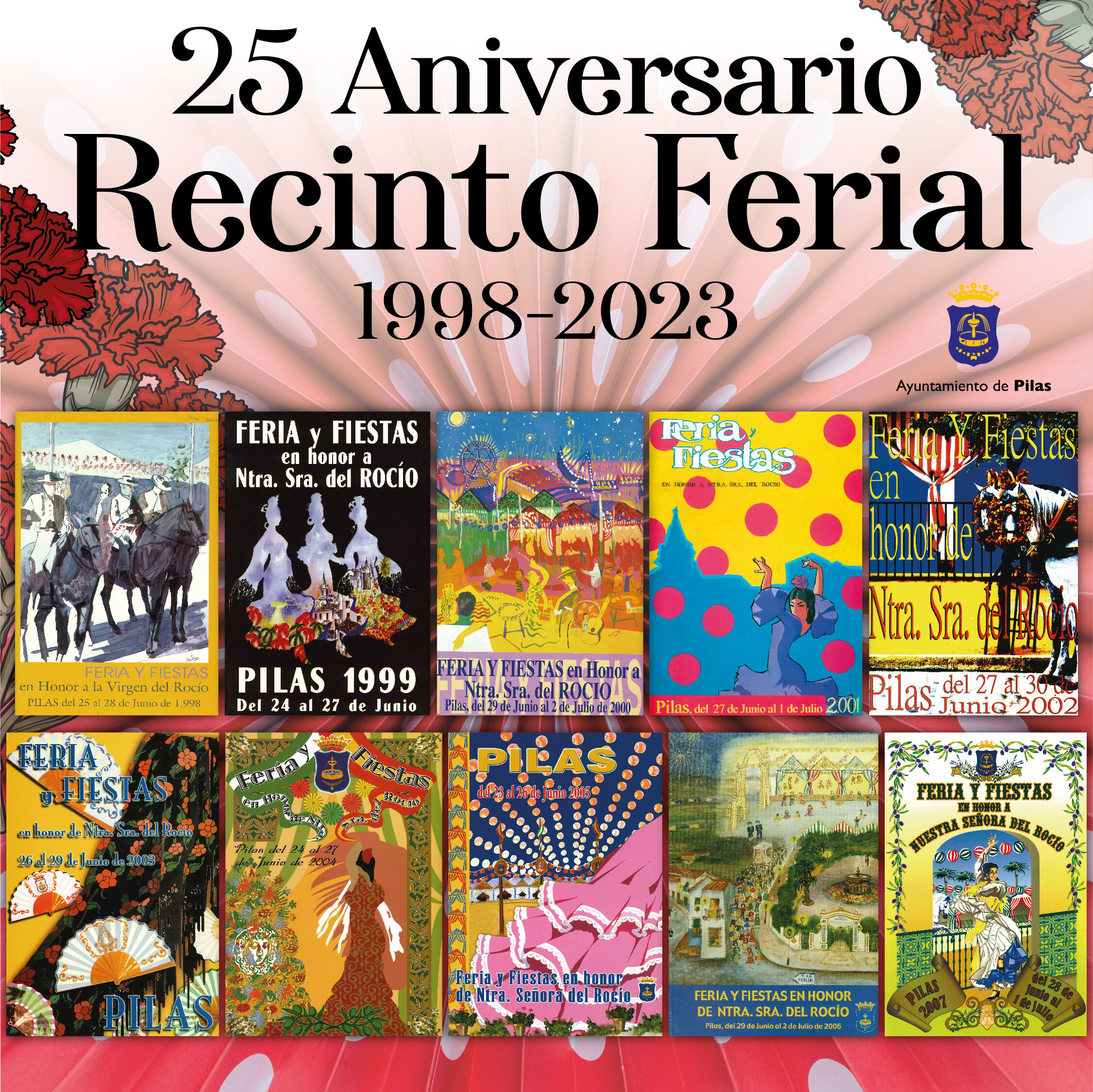Un año más, el Recinto Ferial volverá a engalanrse con farolillos, casetas y buen ambiente para el disfrute de todos los pileños y pileñas, cuando se cumple el 25 aniversario de la fundación de su emplazamiento actual, que se inauguró en la Feria de 1998. Un aniversario más especial si cabe, ya que tras varios años de dificultad, el Recinto lucirá completo. Más abajo, compartimos, a través de una serie de imágenes, la cartelería completa de Feria de estos 25 años, a excepción de las ediciones que no pudieron celebrarse debido a la pandemia (2020 y 2021), culminando la publicación con el excepcional cartel anunciador de este año, obra de Cristina Moreno.