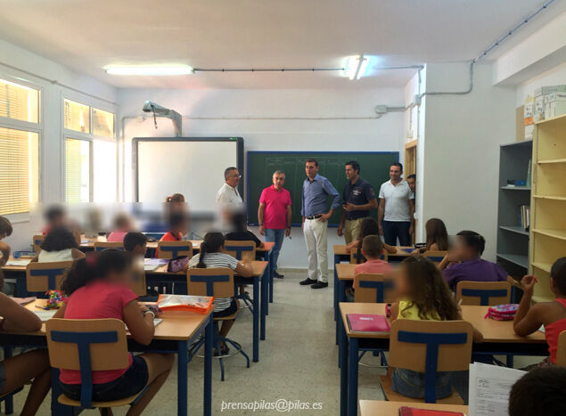 La mayoría de los miembros del equipo de gobierno, con el alcalde, José Leocadio Ortega, y el concejal de Educación, Juan Ignacio Fuentes, a la cabeza han visitado cada uno de los tres centros de Educación Infantil y Primaria de Pilas para comprobar personalmente el correcto comienzo de las clases.