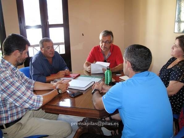 El alcalde de Pilas, Jesús María Sánchez, recibió ayer por la tarde en el Consistorio al delegado de Educación de la Junta de Andalucía, Francisco Díaz Morillo, al director del centro, Manuel Gil y a dos representantes del AMPA Virgen del Rocío.