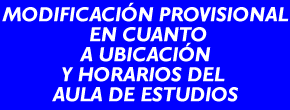 Modificación provisional en cuanto a ubicación y horarios del Aula de Estudios