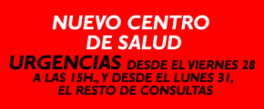 Desde las 15h. del viernes 28 de enero, las URGENCIAS médicas se atenderán en el NUEVO CENTRO DE SALUD, y a partir del lunes, 31 d enero, se atenderán todas las consultas médicas.